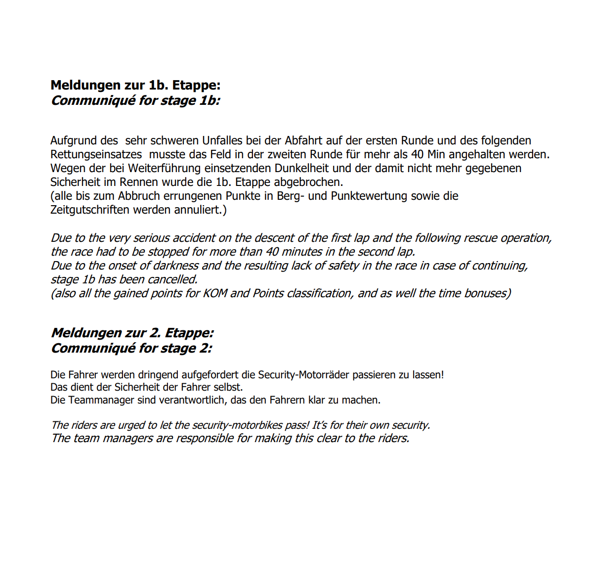 Legende: DNF,AB: (Did Not Finish, Abandon) Rennen nicht beendet - DNS: (Did Not Start) Nicht am Start - OTL: (Outside time limit) Karenzzeit überschritten - DOP: Doping, - *: U23