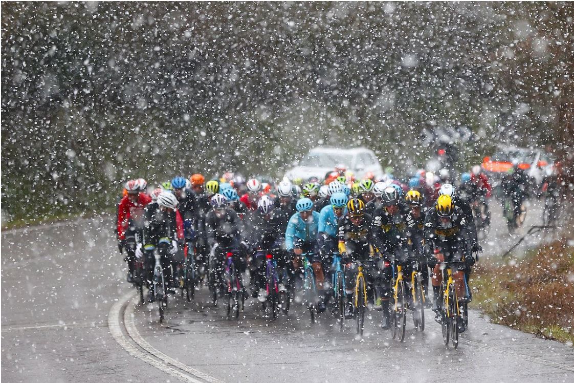 Rennen abgesagt. Ca. 16 Kilometer vor dem Ziel wurde die Etappe wegen Schnee abgesagt worden.