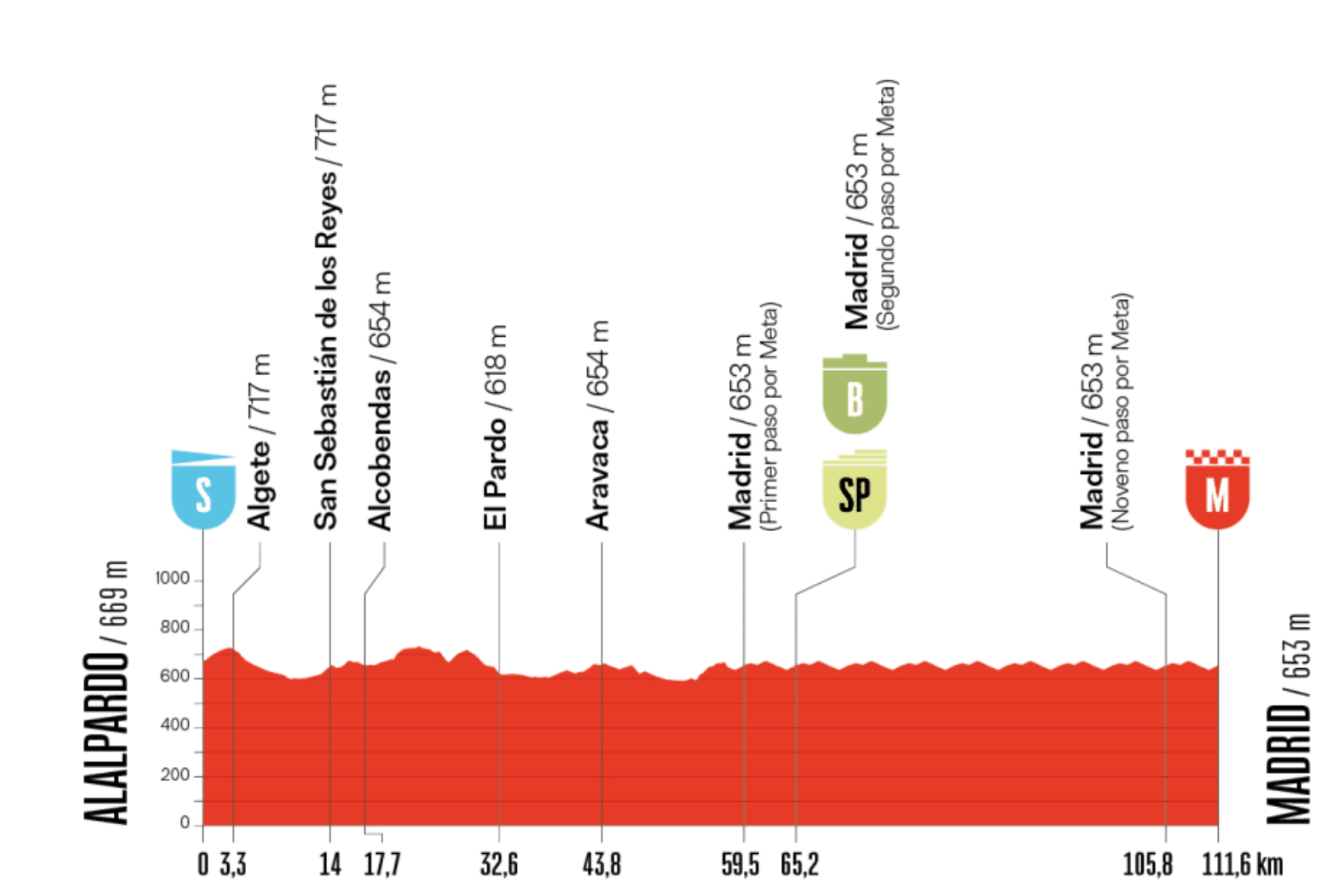 The stage was neutralised and later cancelled for security reasons (protests on the racecourse) moments before the peloton entered the final circuit in Madrid.